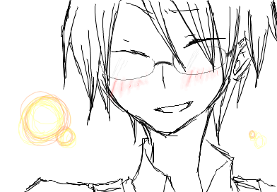 照れ笑いをした絵が描きたかっただけです。眼鏡掛けたらいいじゃないか?眼鏡を付け足しました。眼鏡がシュッと描けるようになりたいです…こうシャッと、シュッと…(分からんわ)