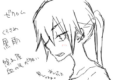 ゼクロム♂寄りの黒雨(くろさめ)です。軽装ver.。絶対に刀を持たせたい!日本刀、日本刀!長刀がいい!黒づくめ!……え、セフィロス…? 考えてる服のイメージも若干被る…でも黒髪・ポニテ・赤眼だし!(言い逃れ)