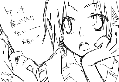 トップ絵用に取り込んで修正途中の絵が、完成する頃には季節外れっぽくなりそうなんで描き直そうかなと思ったり…何かケーキ描きたいんだけど、秋っていったら何だろ?モンブラン?思いつかん…orz