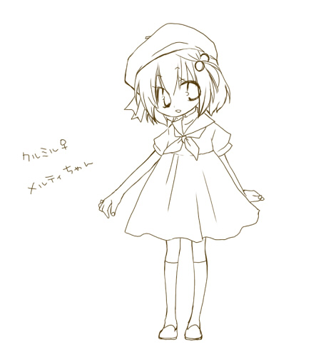 某ちゃんから頂いたクルミルのメルティちゃん。先月描いたものですが頭の中でデザインしたのをいざ描いてみようとしたら、CCさくらの小学校の制服っぽくなりそうだったのでスカート部分変えました。