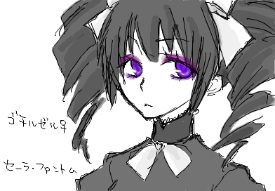 公式で見た時からゴスロリっ子なのは決めてたものの、いざ描くと難しい。ちょっと、縦ロールってどうやって描くの??