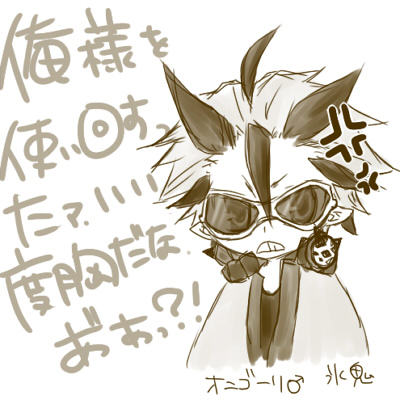 サングラス取られると「僕のサングラス返してよぅ~ヽ(´Д乀)・°・」って泣いちゃう弱虫鬼で、可愛いもの好きなメルヘン男という設定です。笑